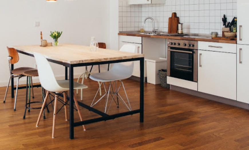 Кухня отличается повышенной влажностью, поэтому покрытия нужно выбирать влагостойкие. Лучше использовать прочные материалы. Они должны выдерживать механические воздействия.