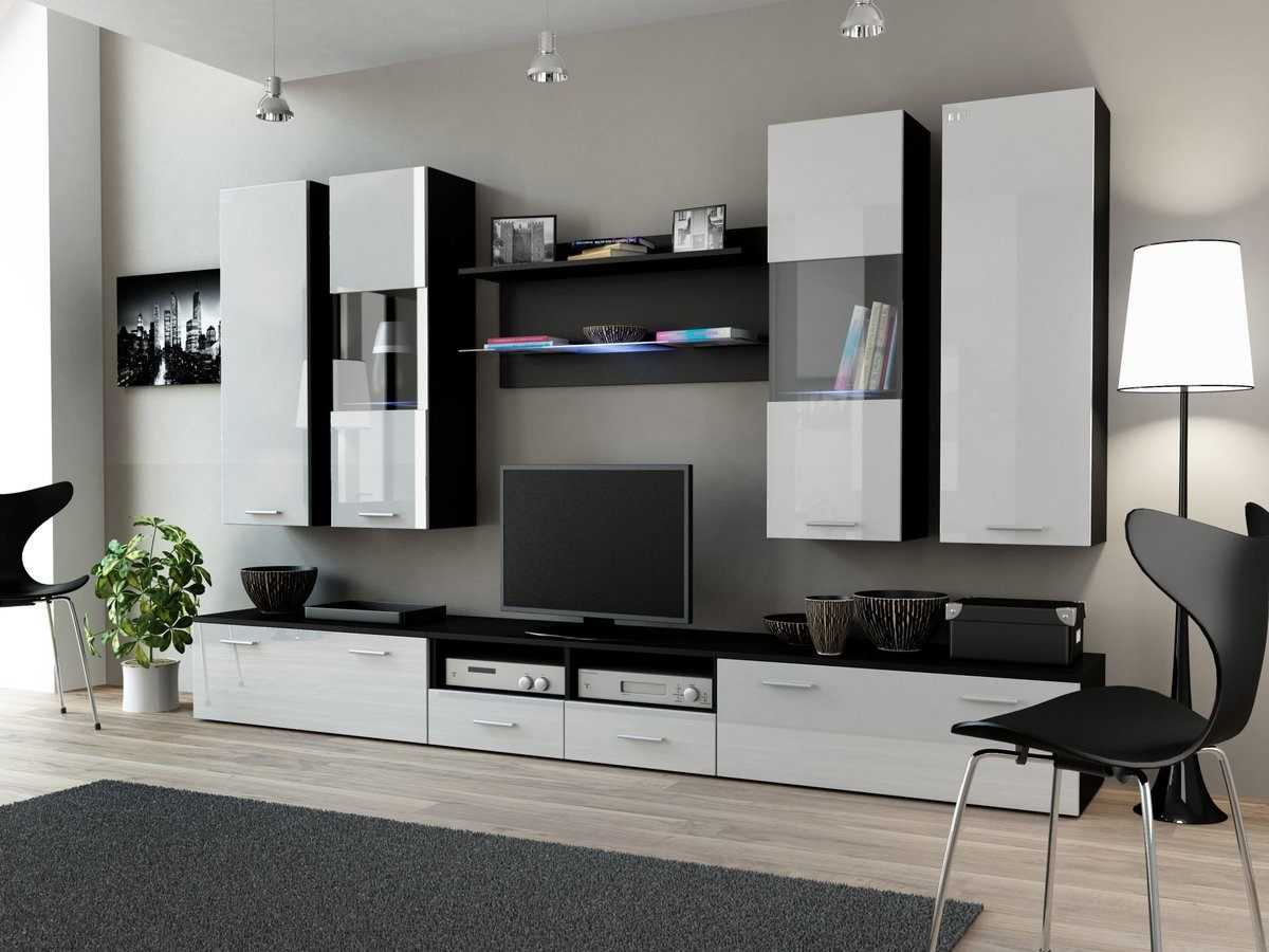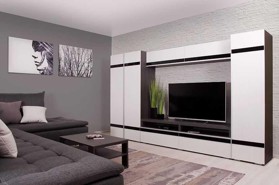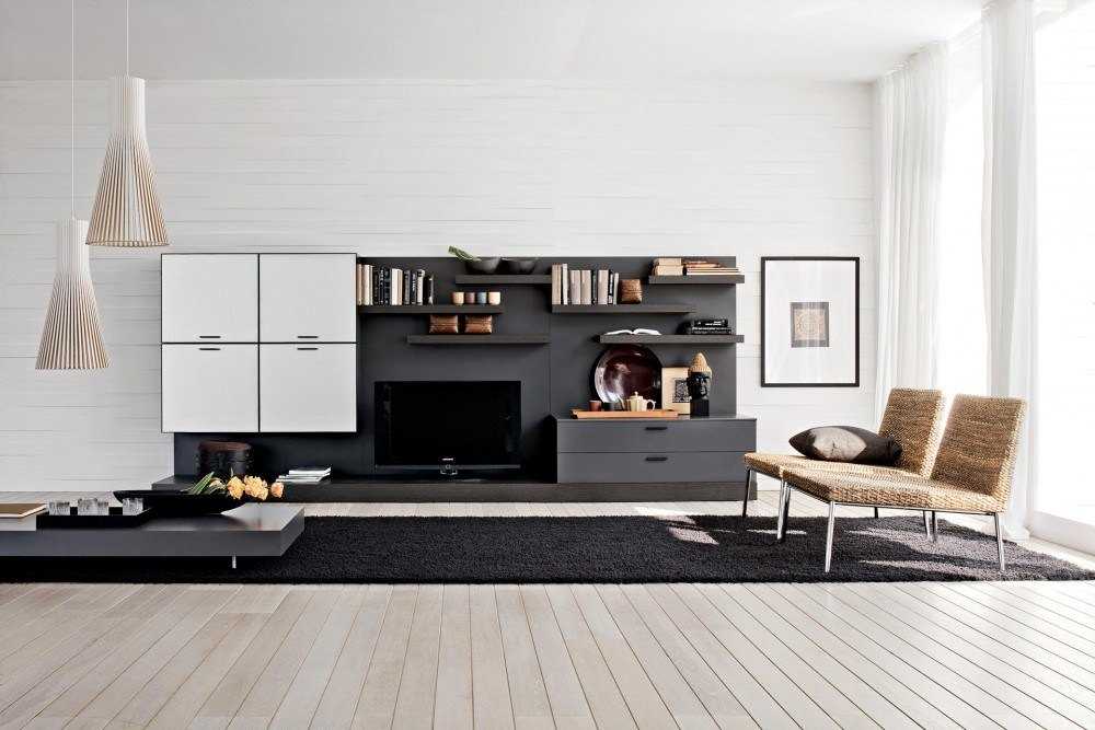 Современная мебель для гостиной прекрасно сочетается со сталью, стеклом, камнем, бетоном, кирпичом или экзотическим деревом. Данные материалы могут подчеркивать, как грубость, так и создавать более мягкое выражение. Черная мебель для гостиной прекрасно сочетается с белыми аксессуарами. И наоборот, белая мебель хорошо смотрится с черными декоративными элементами. Вместе они являются выражением современного дизайна.