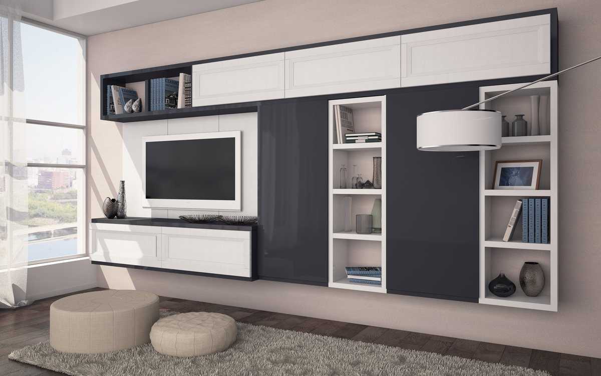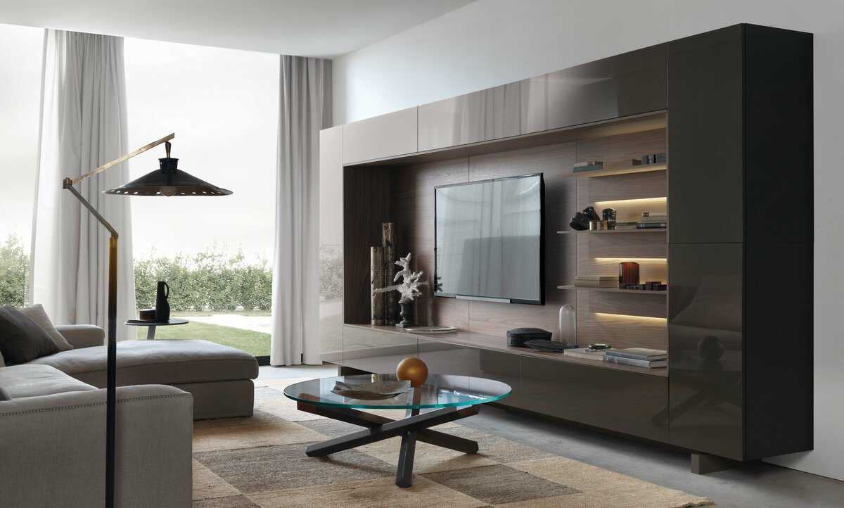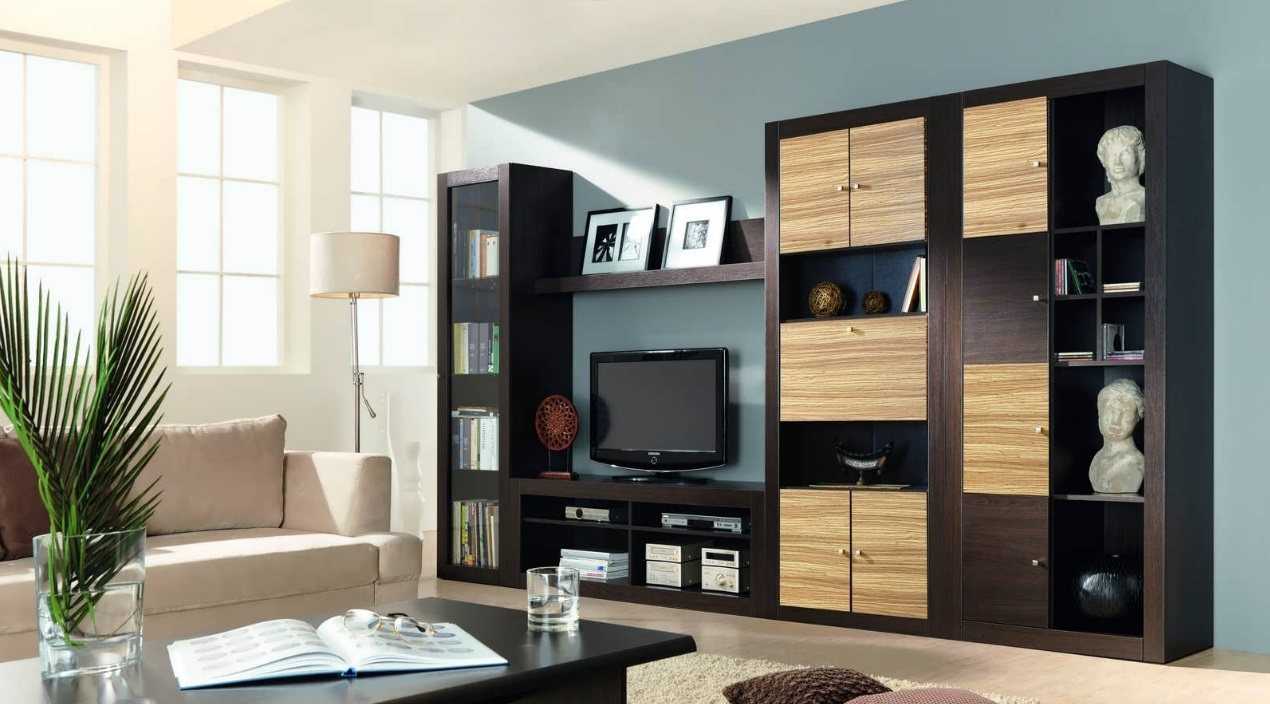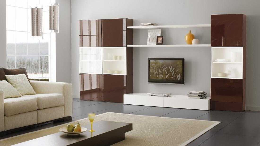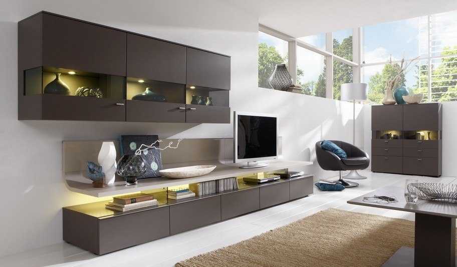 Дверные фасады на мебели могут попросту отсутствовать. В таком случае, шкаф получает название стенка. Подобные шкафы-стенки весьма часто располагают именно в гостиной. Причин для этого много:
