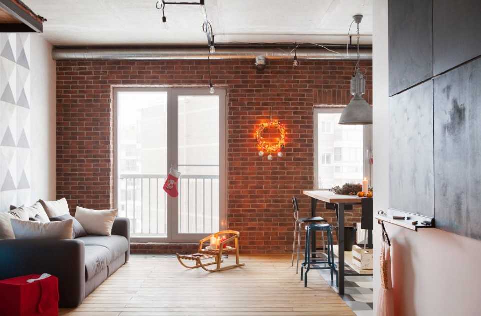 Стиль лофт подойдет для просторных комнат с достаточно высокими потолками и двухуровневых квартир. Оформление отличается предельной лаконичностью отделки и обстановки. В интерьере хорошо смотрится штукатурка под бетон или отделка под кирпич. Украшение граффити усиливает ощущение небрежности, свойственной наружным стенам. Трубы и детали вентиляции не закрываются, а становятся своеобразными составляющими декора. Предметы мебели, в отличие от классических стилей, здесь чаще являются элементами зонирования пространства: книжные стеллажи могут разделять как перегородка между кухней и спальней, барная стойка станет хорошим разграничителем для кухонной зоны и зоны гостиной.