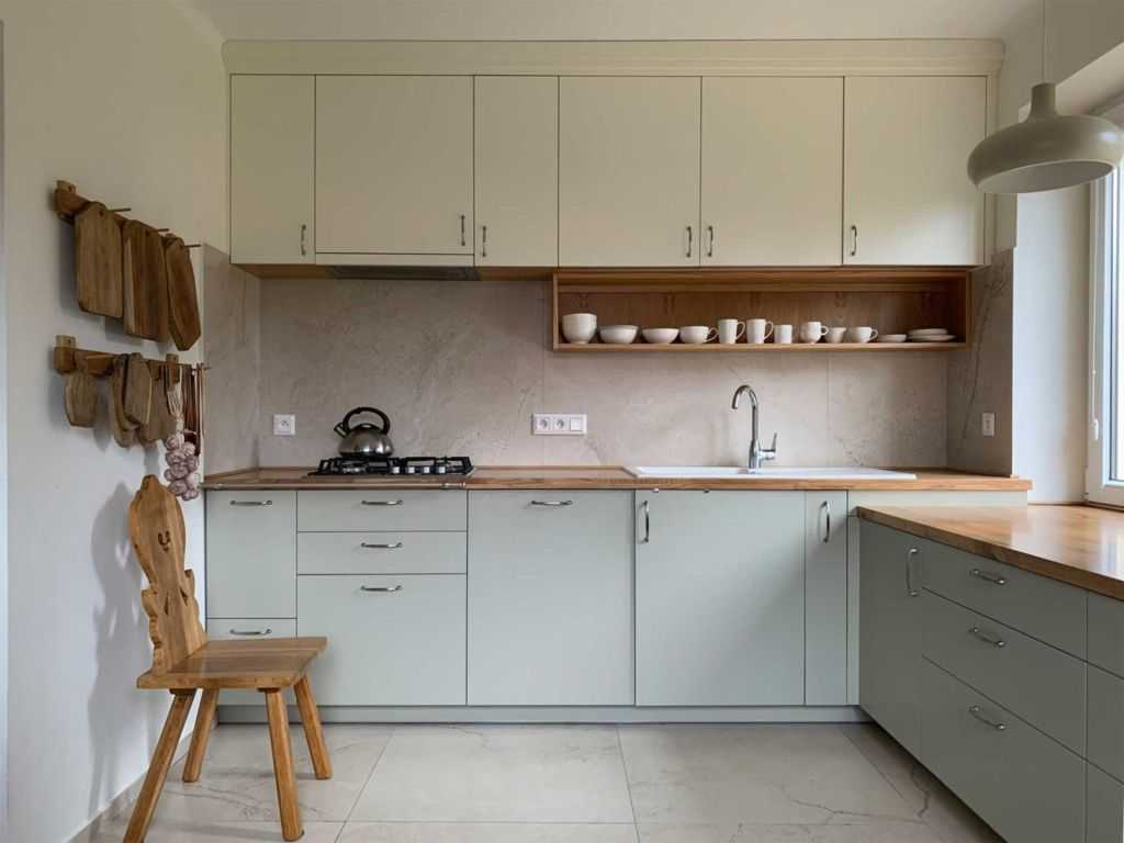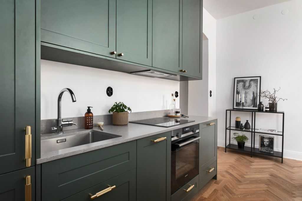 Кухня, окрашенная в зеленый цвет, станет не только более уютной, но и расслабляющей. Ничто не работает более расслабляюще, чем общение с природой. Этот цвет может быть введен в интерьеры как в форме цветов 2021 года, то есть Adeline, Back to Nature, Tranquil Dawn или Minty Fresh и Neo Mint, так и других модных оттенков, например, шалфея или зеленого горошка.