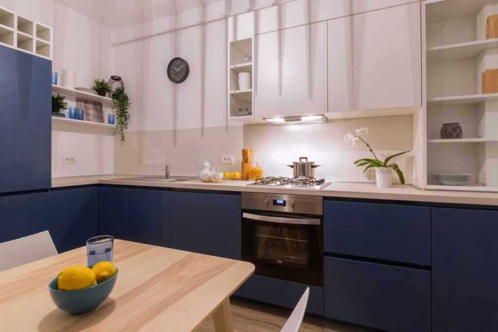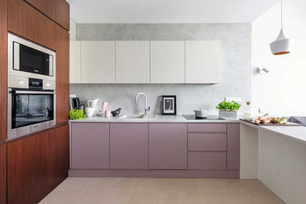 Считается, что цветовая гармония – это грамотно подобранные 3 цвета в интерьере. 60% цвета должны составлять стены и мягкая мебель. 30% отдают дополнительному цвету — это фасады кухонного гарнитура и каркасные части меблировки. 10% должны составлять яркие акценты. Но последние годы в тренде нарушать правила. Поэтому становятся популярны трехцветные кухонные гарнитуры.