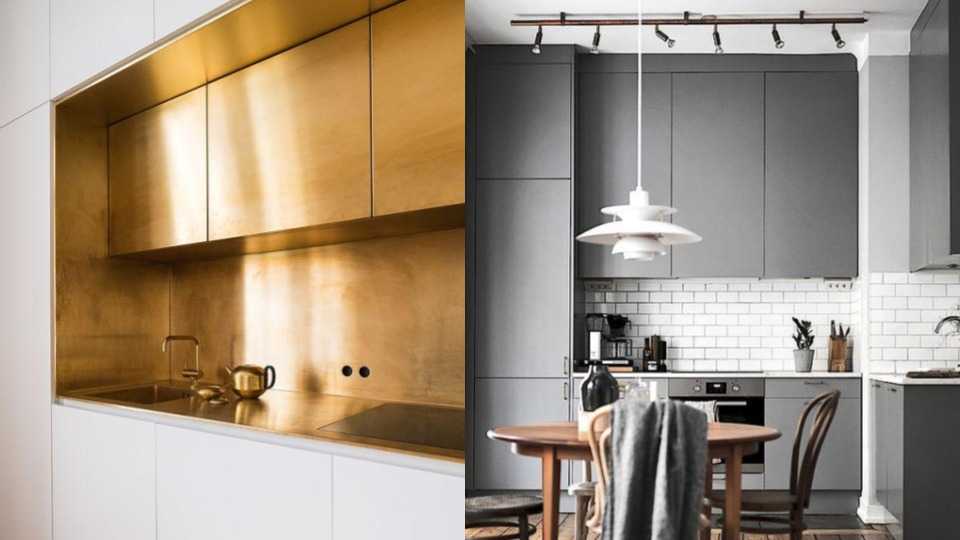 Будут популярны серые, бежевые, коричневые и голубые оттенки с черными и белыми акцентами. Светлая гамма подходит для основных стилей типа скандинавского, классического и неоклассического, а темная — к ар-деко, лофту и минимализму. Нужно помнить о том, что светлые стены визуально расширят площадь, а темные, наоборот, сузят. Чистый белый цвет для кухни будет крайне непрактичным выбором. Он быстро потеряет свежесть и потребует постоянного влажного ухода. Поэтому лучше выбрать светлые цветные тона.