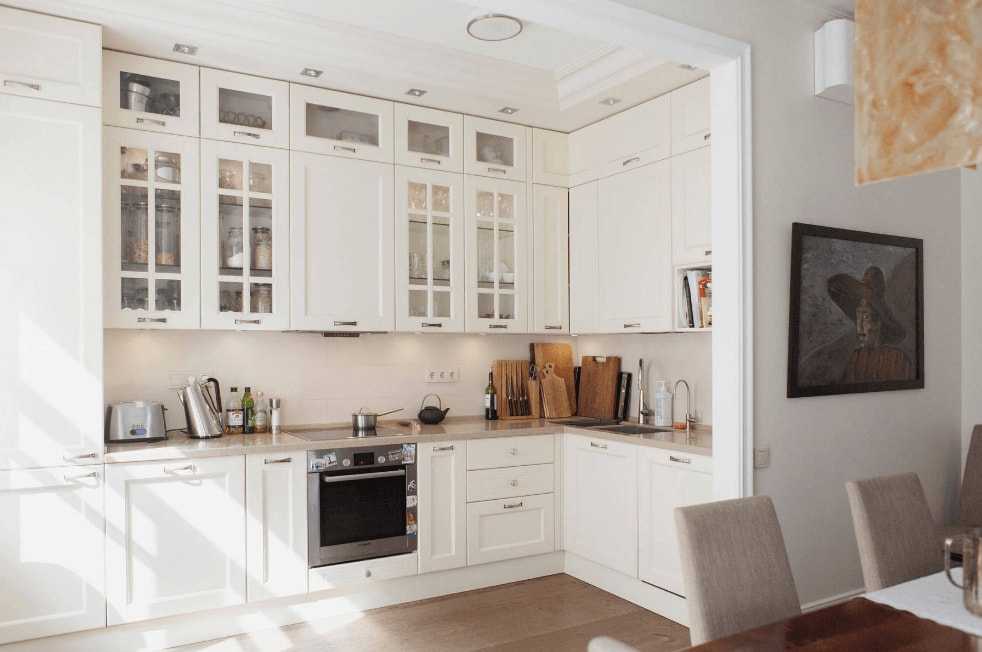 Как уже говорилось выше, правильно подобранная цветовая гамма помогает визуально скорректировать маленькую кухню. Поэтому светлые оттенки бежевого, белого или молочного – это идеальный вариант для кухонной мебели. Вопреки распространенному мнению, она не требует слишком больших усилий в уборке. Все зависит исключительно от регулярности.