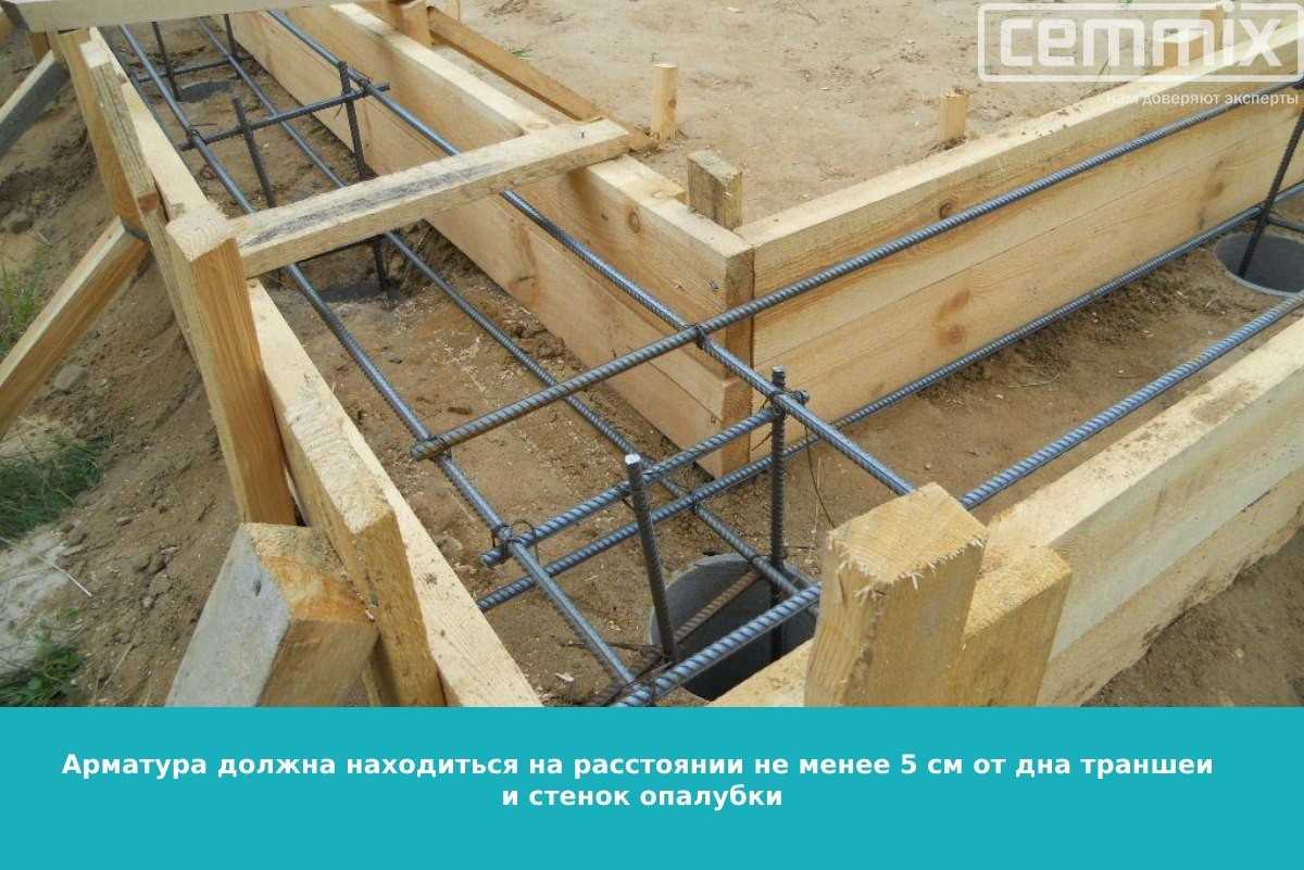 Для создания арматурного каркаса можно использовать обычные прутья диаметром от 14 мм. Класс арматуры не имеет значения, если соединение прутьев будет выполняться вязальной проволокой. Читайте более подробно про правила выбора и расчета арматуры для фундамента, а также про такую новинку, как стеклопластиковая арматура.