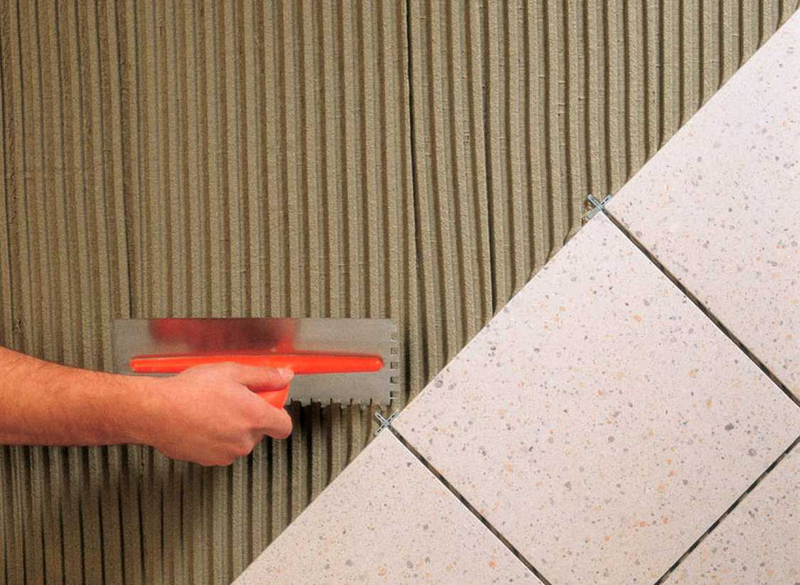 Приклеивание плиток к стене