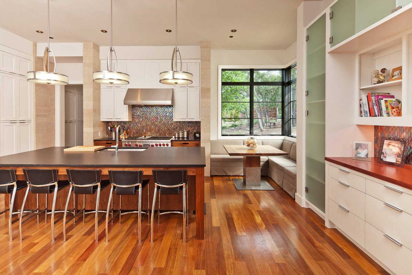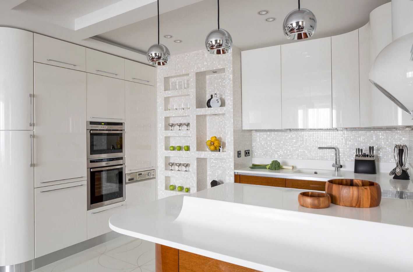 Кухонное пространство или столовая в первую очередь предполагает компактные и функциональные углубления с отделкой в виде декоративного камня, дерева, стекла, обоев и других материалов или ниши, расположенные в различных мебельных предметах, например в кухонном гарнитуре или буфете.