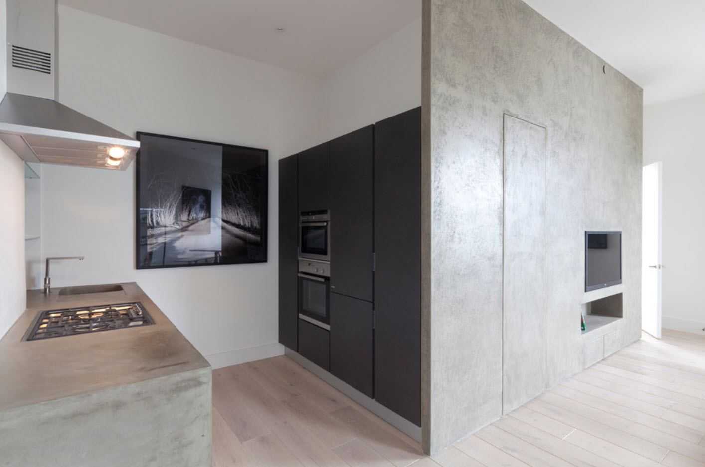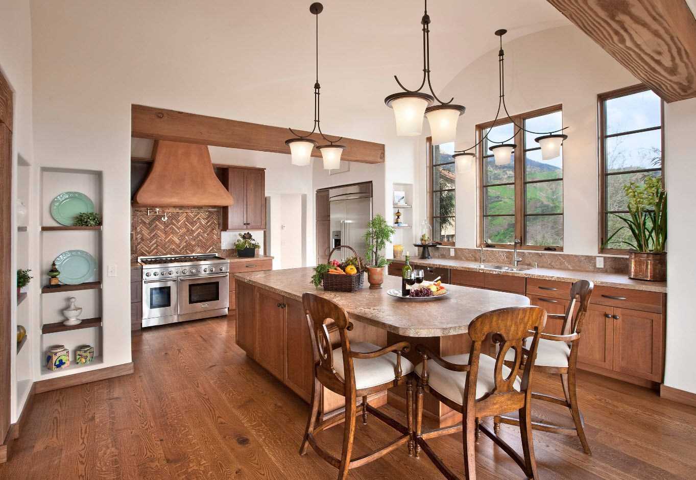 - Второй — использовать лестницу как одну из стен кухни. Этот тип решения особенно рекомендуется в квартирах, где, кроме лестницы, владелец дома имеет в своем распоряжении большую площадь, прилегающую к лестнице.
