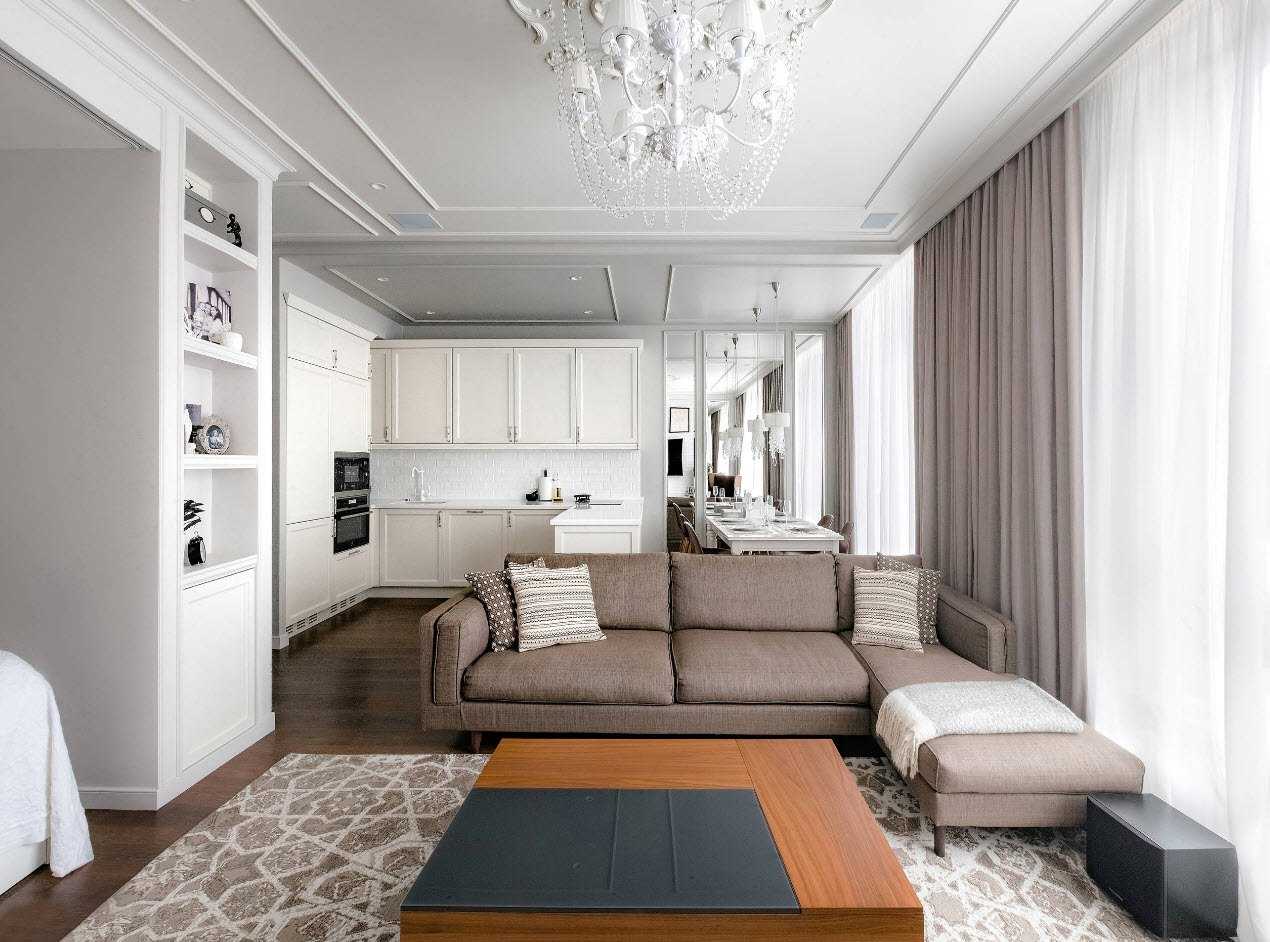 Также можно оставить помещение без разделения на спальню и зал. В таком случае сохранится единство и целостность дизайна.