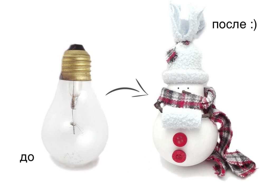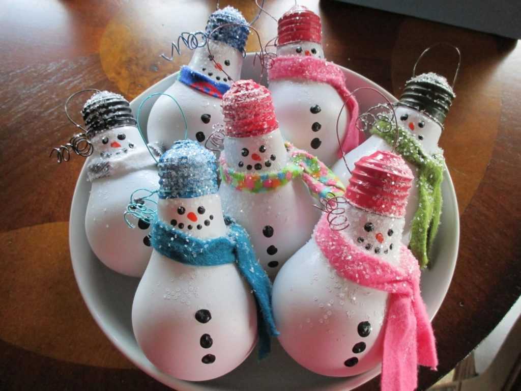 Использованные лампы накаливания многие выбрасывают, что совершенно зря. Можно сделать из них оригинальные игрушки на елку. Забавные снеговики вызовут улыбку и поднимут настроение.