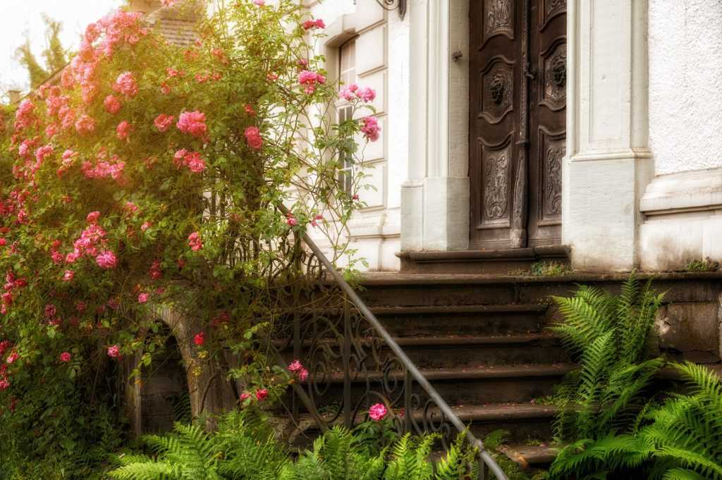 - Рядом с главным входом, если есть большой палисад с живой изгородью или высоким забором, которые закрывают от любопытных взглядов.