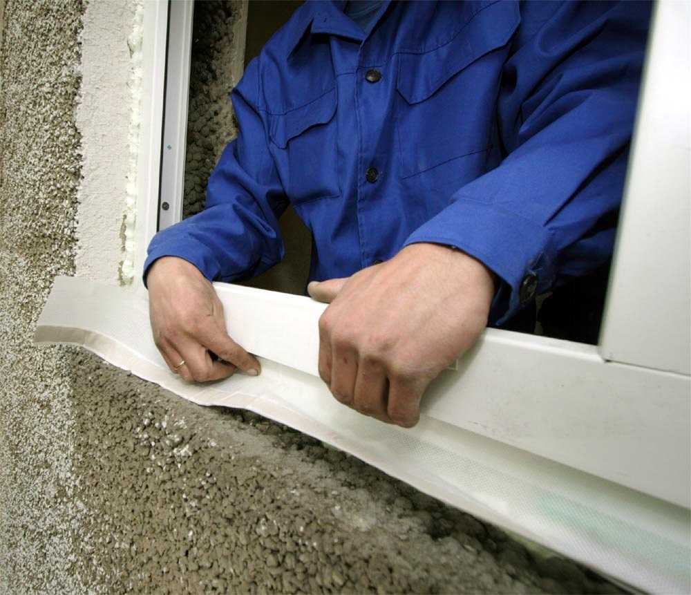 После подготовки деталей откосов, нужно установить отлив. Чтобы горизонталь получилась идеальной, нужен строительный уровень. Стык снизу стены и рамы нужно оформить теплоизолирующим материалом и покрыть диффузной лентой. Это послужит барьером для шума и влаги.