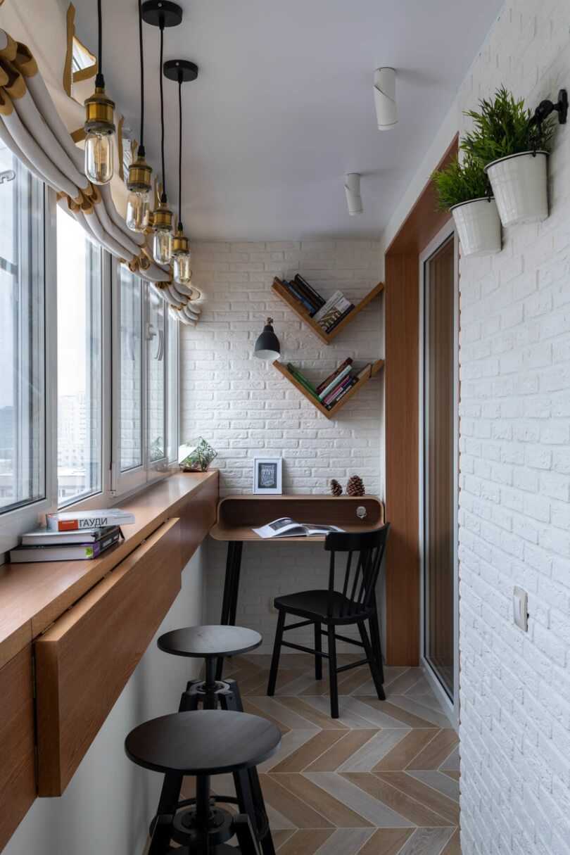- Если балкон или лоджия разделен на несколько функциональных зон, то для каждой из них целесообразно предусмотреть свое освещение. К примеру, зона отдыха требует общего приглушенного освещения, а для рабочего кабинета подойдет направленный поток с хорошей цветопередачей.