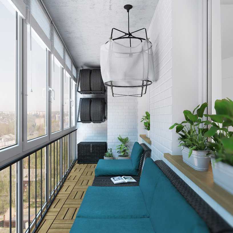 Свисающие с потолка большие люстры или лампы будут визуально скрадывать и так небольшое пространство балкона. Но если у вас огромная лоджия — такие светильники наоборот могут стать интересным акцентом в интерьере.