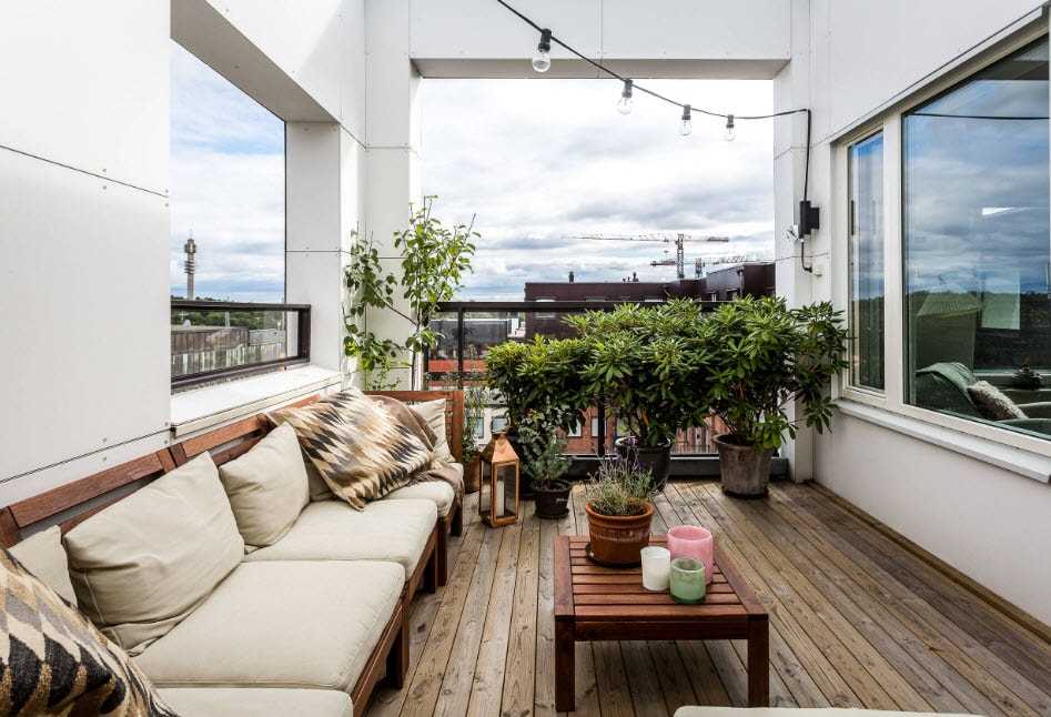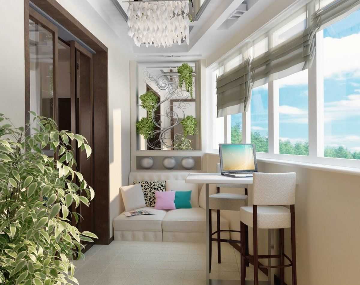 Если у вас есть большой балкон, то множество современных проектов идеально подойдет. Специалисты по дизайну интерьеров организовывают пространство так, чтобы оно напоминало столовую или гостиную. Удобные диваны из ротанга могут быть украшены матрасами и цветочными подушками, которые делают все это элегантным. За столом со стульями из одинакового материала трапеза с семьей и друзьями будет чистым удовольствием. Если украсить балкон множеством растений, то пространство будет уютно и неповторимо.