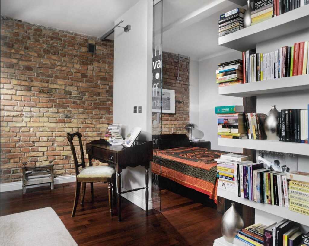 Для современных стилей интерьера, например, Лофт, используется кирпичная и каменная кладка. Для маленьких прямоугольных спален можно использовать следующие покрытия: