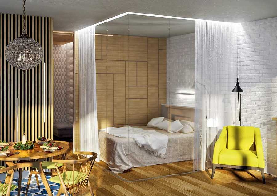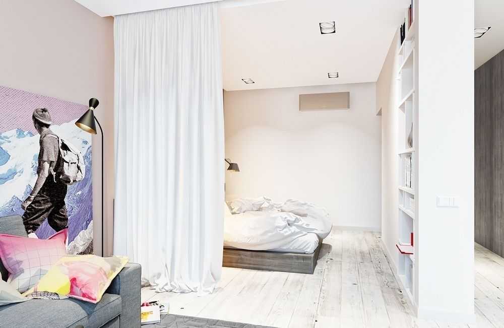 Зонирование однокомнатной квартиры шторамиИсточник dizainvfoto.ru