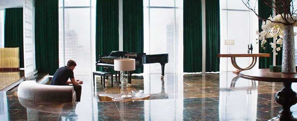 Интерьер для сьемок фильма «50 оттенков серого», получился очень современным, строгий и немного холодный интерьер, напоминает характер своего владельца. В квартире спрятано много декоративных подсказок которые могли бы, открыть нам намек на какую то из характерных особенностей Кристиана.