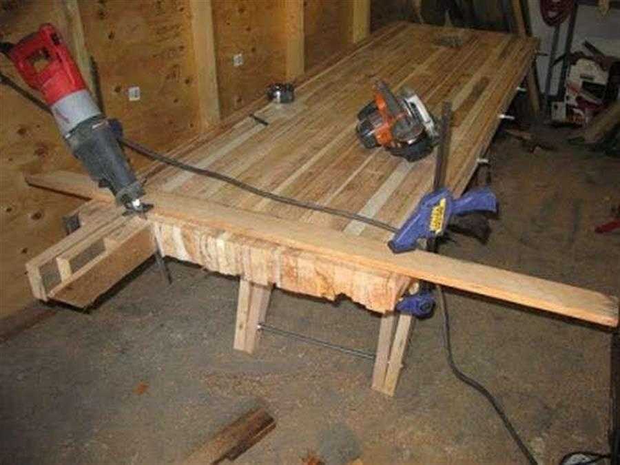 Объем столешницы будет зависеть от участка мастерской. Вместе с этим, на маленьком столе будет некомфортно распиливать большие отрезки. Если деталь полностью умещается на рабочей плоскости, срез производится ровнее и аккуратнее. Высоту ножек выбирают в зависимости от роста мастера.