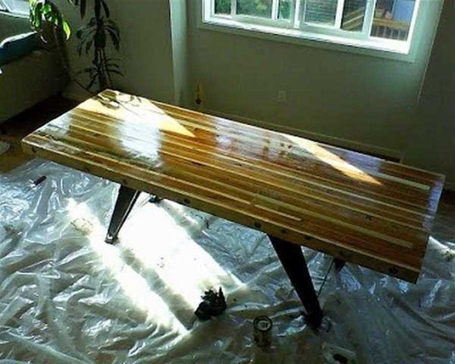 - Покрываем изделие акриловым лаком. Это позволит сохранить привлекательный внешний вид стола длительное время.