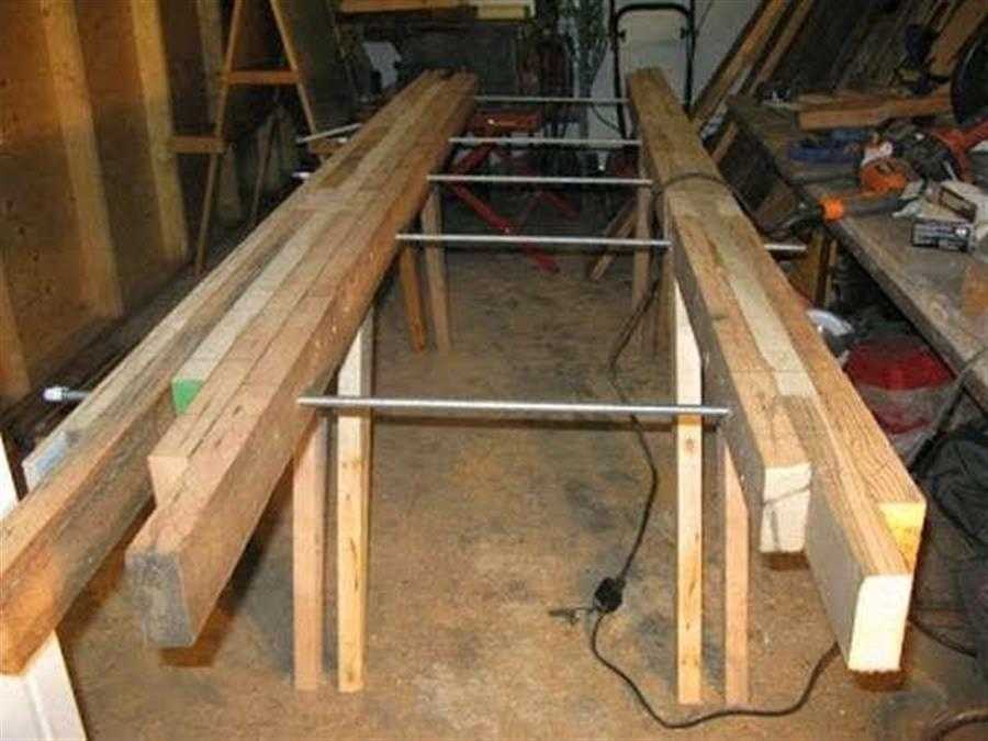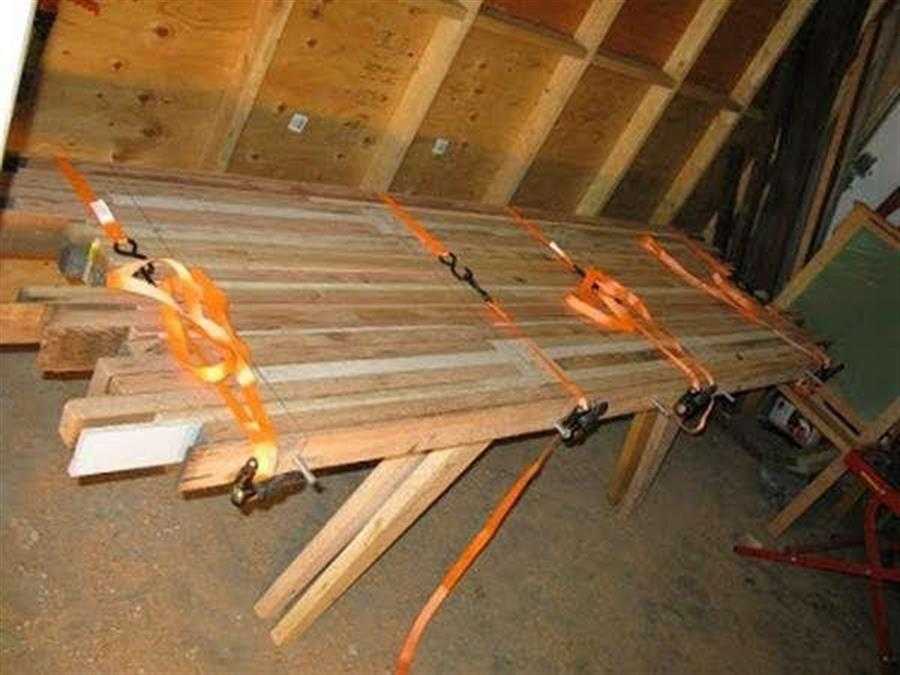 Стягиваем склеенные доски имеющимися тросами, струбцинами, стяжками