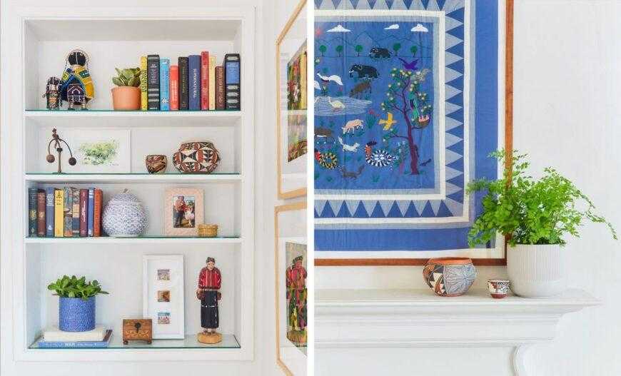 - Книжные полки с книгами;