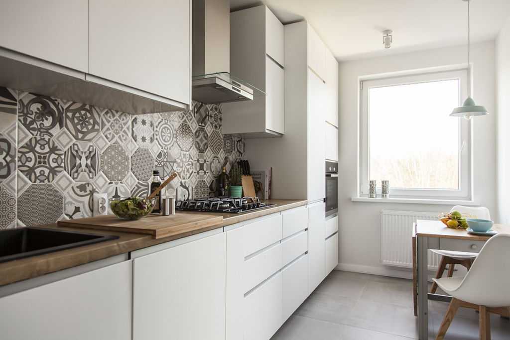 Если вы обладаете маленькой кухней, то для визуального увеличения пространства, вы, скорее всего, будете использовать светлую фурнитуру, то для такого решения идеально подойдет яркая плитка. Она внесет краски в интерьер и станет характерной чертой вашего стиля.