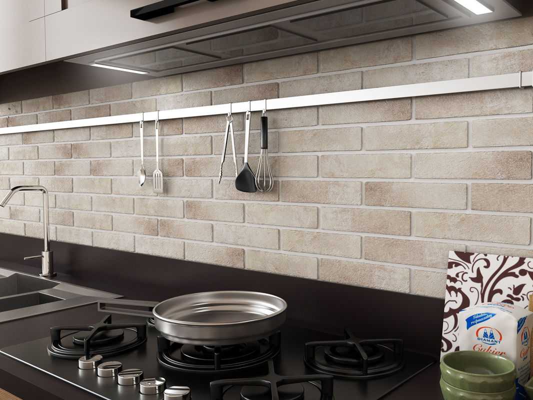 Композиции в индустриальном стиле лофт, в которых на стенах царит необработанный кирпич, пользуются неослабной популярностью. Если эта почти аскетическая строгость не в нашем стиле, и хотите добавить немного уюта, то можете положить кирпичную плитку с неровной текстурой, но с теплым оттенком. Настенные плитки в песочно-бежевом, светло-сером или даже белом цвете будут здесь идеальными.