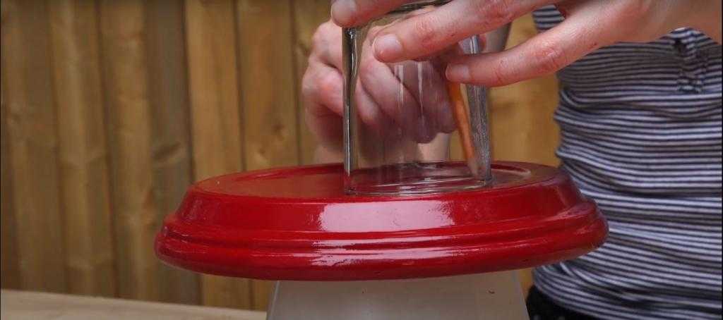 После того, как краска на всех элементах декоративного гриба высохнет, нанесите клей на дно горшка и приклейте к нему поддон таким образом, чтобы получился нарядный мухомор.