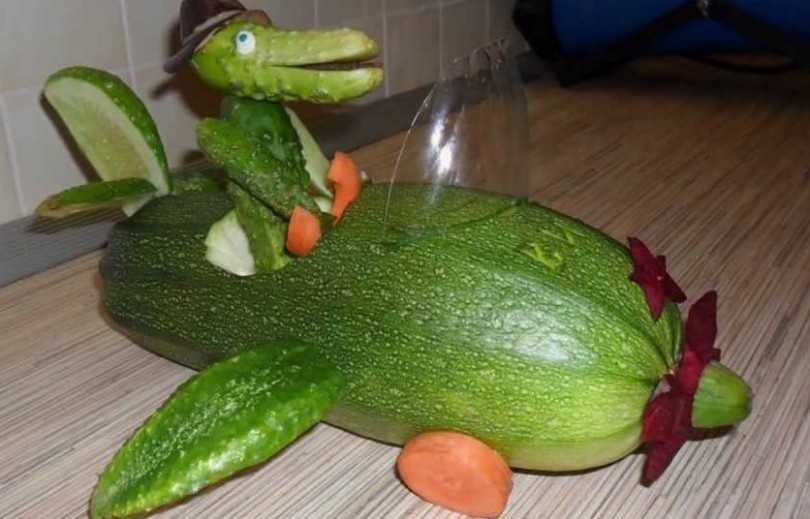 И помните: не нужно искать овощи идеальной формы. Наоборот, самые интересные и забавные композиции всегда получаются из овощей и фруктов, при виде которых возникает улыбка. Нужно лишь понять, что напоминает продукт, а после приукрасить его соответствующим образом.