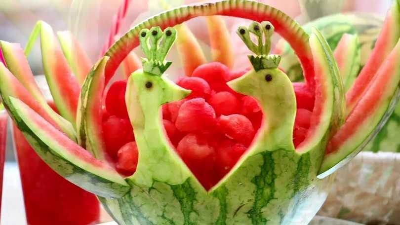 Дыни и арбузы – самые подходящие фрукты для карвинга и изготовления всевозможных поделок благодаря своей форме, плотной корке и цвету.