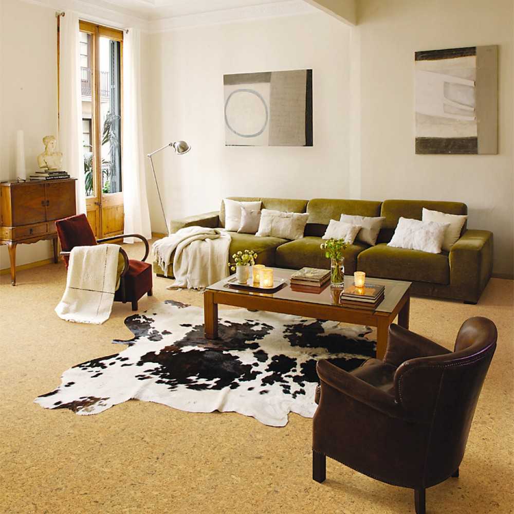 И ярким пятном пол в гостиной не должен быть – важно, чтобы он идеально вписывался в общий стиль и значительно не выделялся