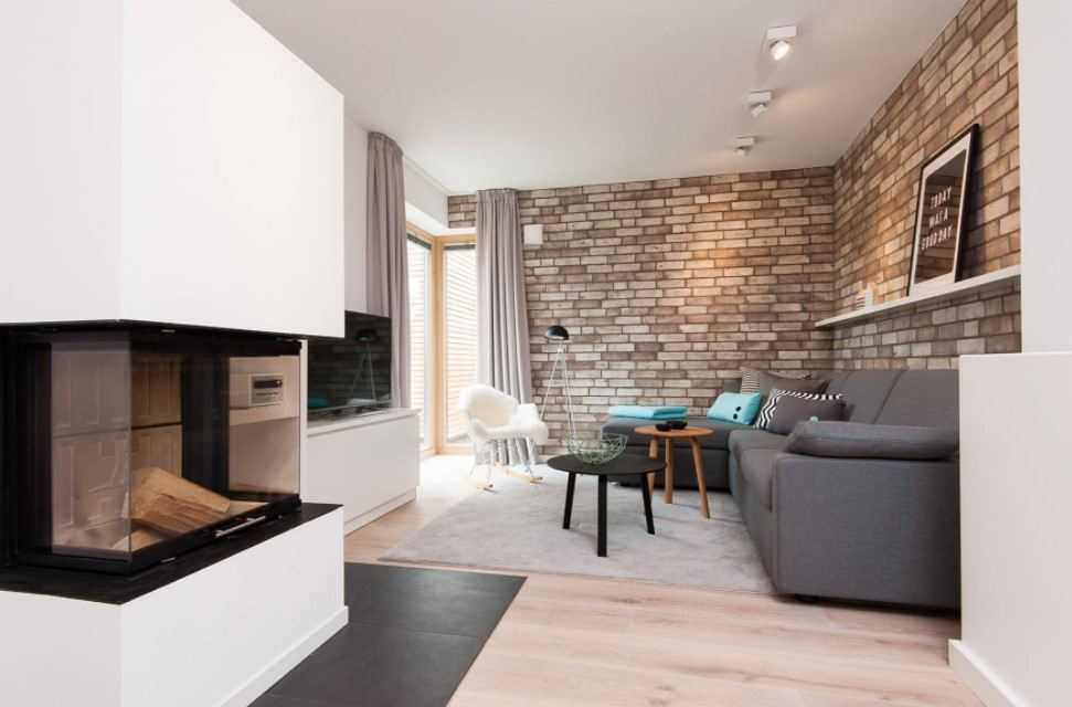 В доме центром комнаты может быть и камин, который должен сочетаться с выбранным стилем оформления. Мягкую мебель располагают в непосредственной близости от источника тепла. Если размеры комнаты позволяют, можно поставить два дивана напротив друг друга, пространство между ними разделить журнальным столиком, пол украсить ковром.