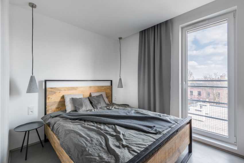 Необычным оформлением станет серая отделка, которая в зависимости от оттенка придает спальне либо мягкий уют, либо дополнительную прохладу.