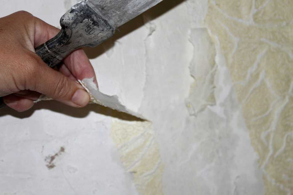 - Работа с потолком и стенками. С поверхности удалите старую отделку: краску, побелку, обои. С помощью наждака и шпателя сделать это несложно. Работайте с использованием защитных средств, в числе которых очки и респиратор. Если возникнут трудности со снятием обоев, намочите теплой водой.