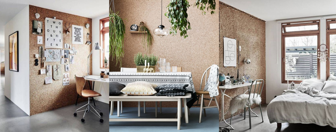 Декорирование некоторых участков помещения пробковыми обоями привнесет ноту тепла и оригинальности в интерьер
