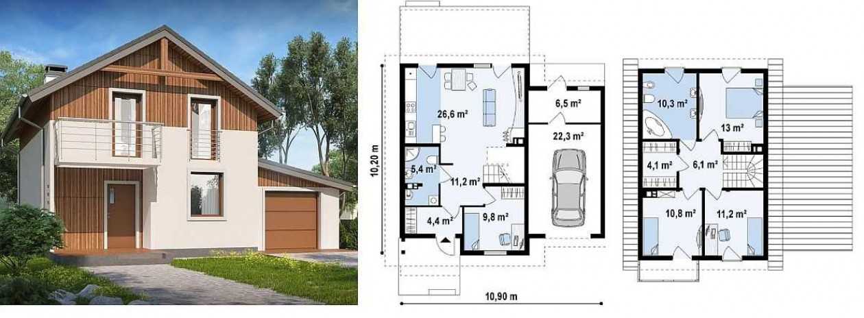 Благодаря объединению дома с гаражом, можно существенно сэкономить полезную площадь участка