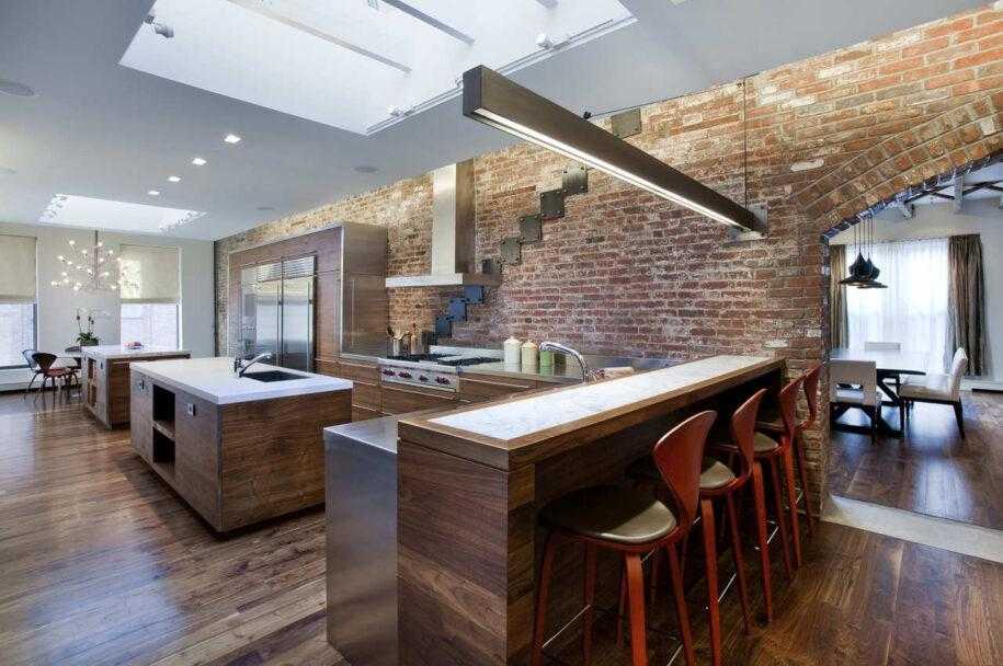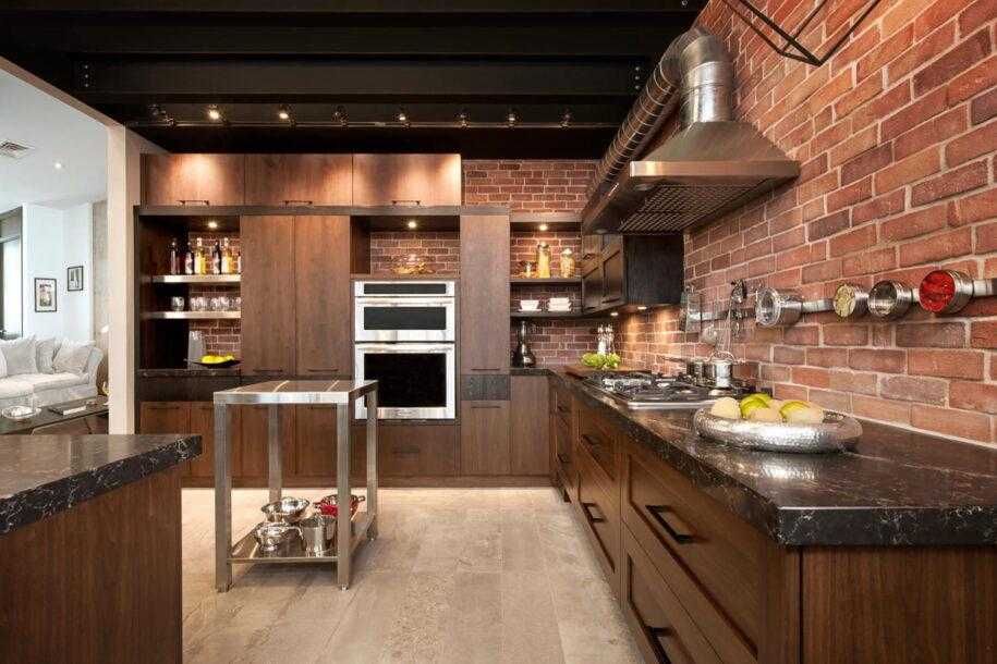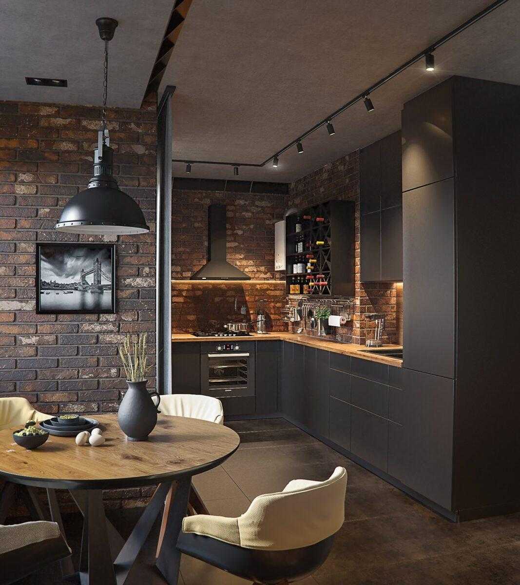 Кухня в стиле лофт подходит для любителей современного стиля, при этом с маленькой площадью кухни и минимальным набором мебели и техники.
