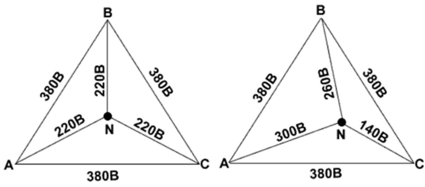 Трехфазная система электропитания характеризуется несколькими значениями напряжения и тока. Все зависит от того, между какими точками схемы производятся измерения: