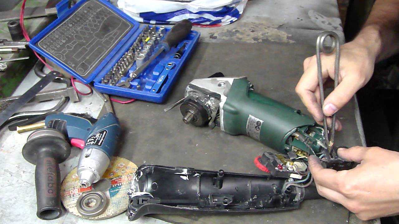 Это основные виды неисправностей, выявить которые может даже новичок. Подшипники и щетки принадлежат к категории расходных деталей, поэтому не удивляйтесь, если через полгода эксплуатации агрегата возникнет необходимость их замены. С простыми видами поломок на болгарках все понятно, но часто бывает так, что все вроде проверено, а инструмент не работает. Что же делать в такой непростой ситуации? Для этого нужно углубиться в тематику ремонта болгарок, и попытаться понять, что же является причиной. Часто в таких случаях помогает «метод тыка», но мы на него не будем опираться, чтобы не пострадать. Рассмотрим все виды дефектов и поломок на болгарках, а также особенности их выявления и устранения.