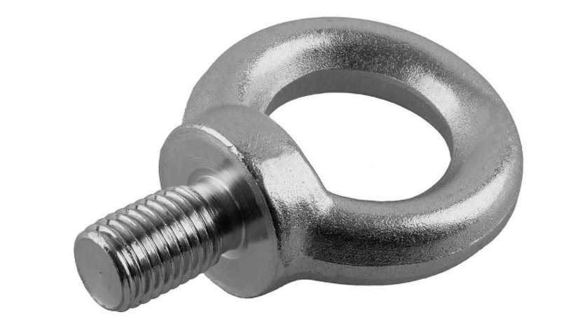 Рым-болт состоит из двух частей: собственно болта и кольца (который называется «рым»). Болт вкручивается в отверстие, а к кольцу цепляют трос. При этом кольцо может вращаться в пазу или быть монолитным. Вообще, существует много видов рым-болтов, о чем мы еще расскажем ниже