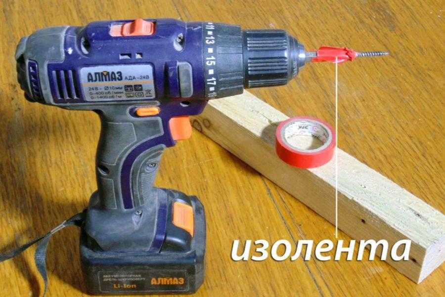 Если под рукой не оказалось изоленты можно использовать обыкновенный скотч или так называемый малярный скотч. Для этого нужно отрезать небольшую полосу скотча и в ее центральной части сделать отверстие. Затем в отверстие нужно вставить саморез и поместить его на биту шуруповерта. После этого скотч аккуратно приклеивается вместе с саморезом.