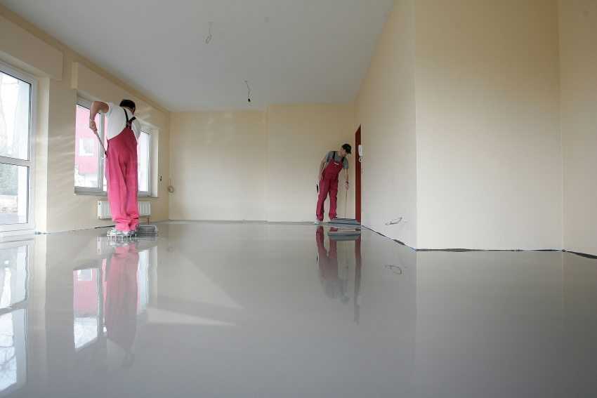 При подготовке поверхности основания для заливки наливного пола, специалисты советуют обработать ее быстросохнущей грунтовкой.