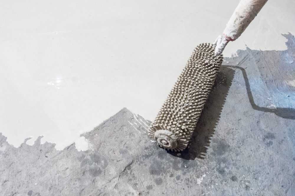 После того как шпатлевка, цемент или клей, использованный для ремонта поверхности, высохнет, пол необходимо прогрунтовать. Лучше использовать при этом высоковязкую глубоко проникающую грунтовку. Это повысит адгезию основного пола и придаст прочность наливным полам. Обычно грунтовка обильно наносится по всей поверхности и тщательно растирается до появления белой пены при помощи кисти-макловицы.