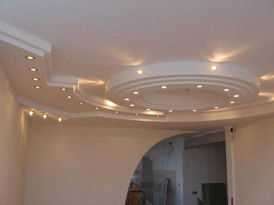 Глянцевые многоуровневые натяжные потолки крепят на гипсокартонную конструкцию, которая позволяет сделать несколько уровней. В них хорошо прячется коммуникации, можно обеспечить хорошее освещение в рабочей зоне, кроме того, они красиво украшают интерьер. Второй уровень может быть простой геометрической формы (полукруг, круг, «П», прямоугольник, эллипс).