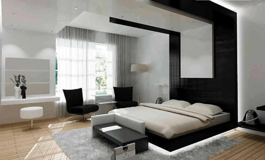 Черно-белая спальня может быть выполнена практически в любом стиле. Стоит только правильно подобрать соотношение цветов, мебель и декоративные элементы.