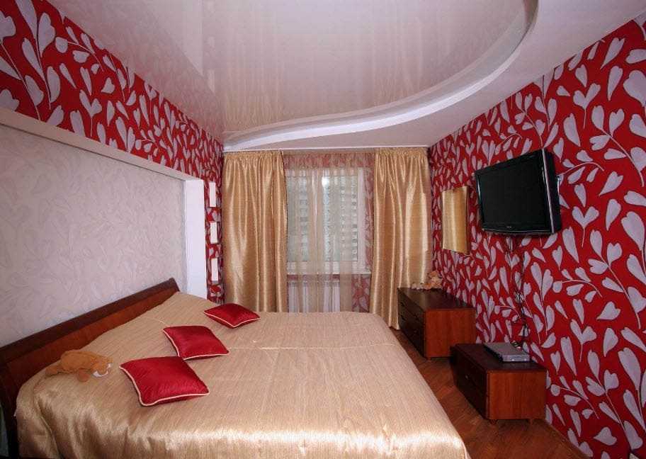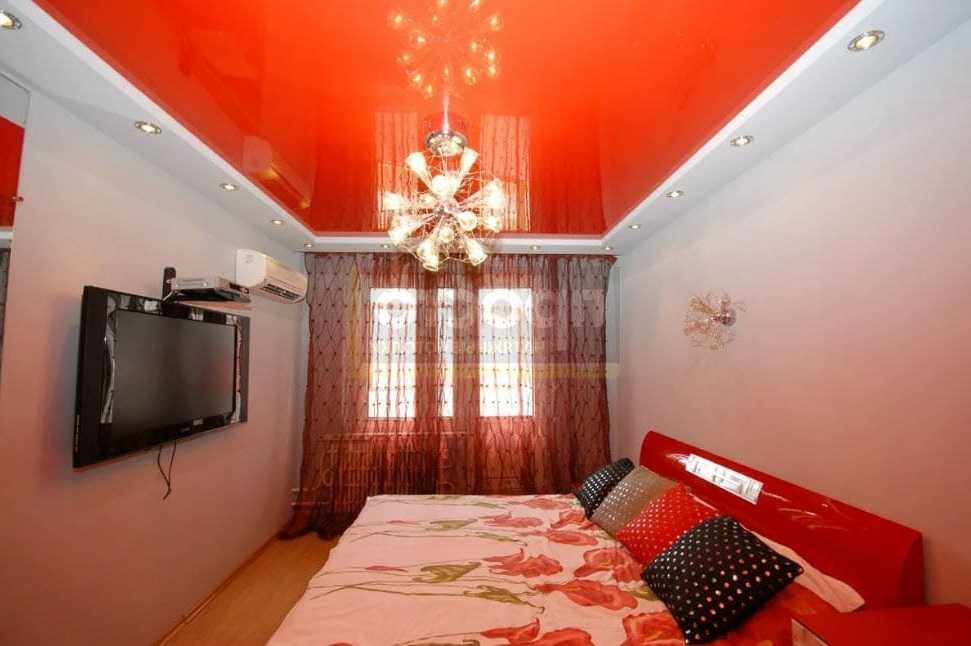 - красный – полотно настолько яркого цвета, как правило, комбинируется с белой гипсокартонной конструкцией. Обязательное условие – глянцевый блеск.