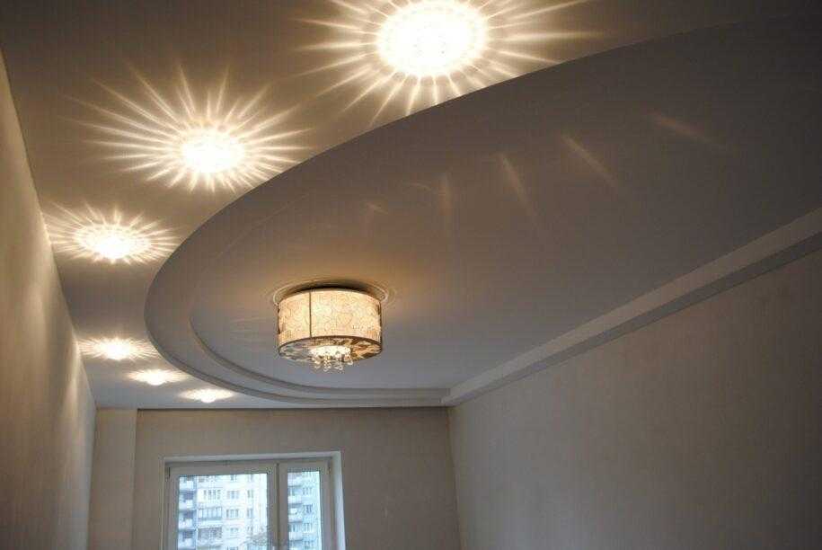 Сделать интерьер по-настоящему уютным и привлекательным позволяет правильно подобранное освещение, спланировать которое нужно заранее. Прежде всего, перемещать светильники после установки натяжного потолка будет затруднительно. Кроме того, некоторые лампы раскаляются до высоких температур (лампы накаливания и галогенные), в результате чего могут испортить полимерное полотно. Выбор лучше сделать в пользу энергосберегающих или светодиодных ламп.