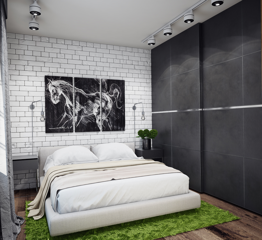 При большой загруженности в повседневной жизни, место отдыха должно максимально способствовать расслаблению и отдыху. В этом случае спальня в стиле минимализм является лучшим вариантом. Минимальное количество функциональной мебели, серо-черные цвета с ярким акцентом не загружают пространство и делают его комфортным.