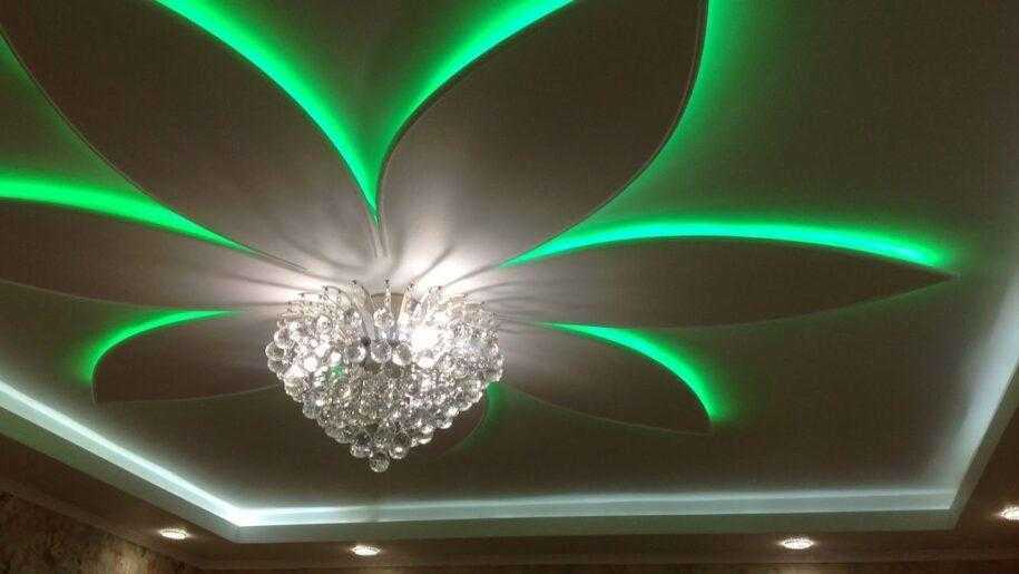 Светодиодная лента не подходит для повседневного освещения, но хороша для атмосферы и декора. Ее пускают по периметру или выделяют отдельные элементы многоуровневой конструкции. С ней же создается эффект парящего потолка – когда за счет спрятанной за каркасом ленты часть конструкции как будто держится в воздухе.